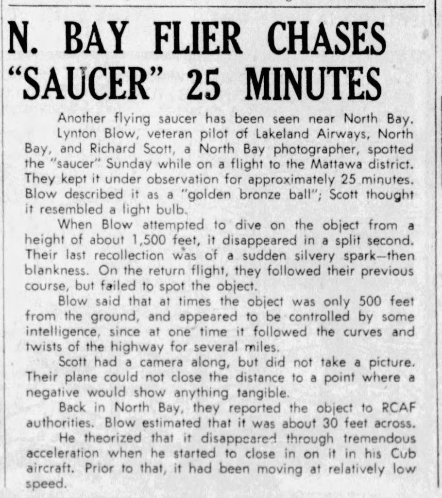 Ghastly News for Tuesday 3/5/2024: “N. Bay Flier Chases ‘Saucer’ 25 Minutes”
