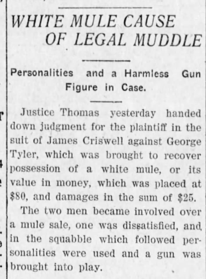 Ghastly News for Monday 1/13/2025: “White Mule Cause of Legal Muddle”