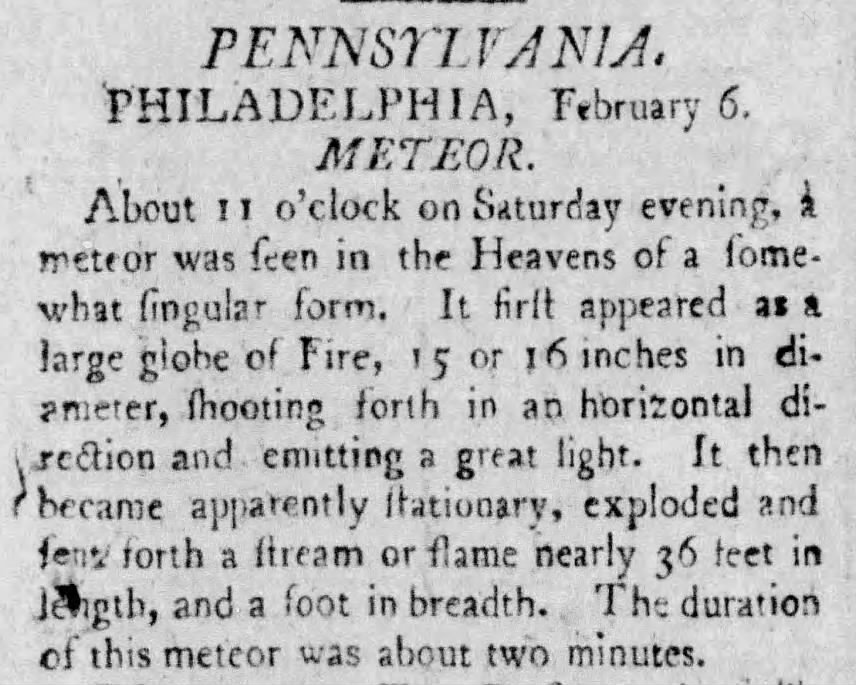 Ghastly News for Wednesday 3/5/2025: “Pennsylvania, Philadelphia, February 6. Meteor.”