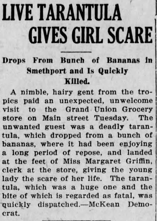 Ghastly News for Tuesday 2/24/2026: “Live Tarantula Gives Girl Scare”