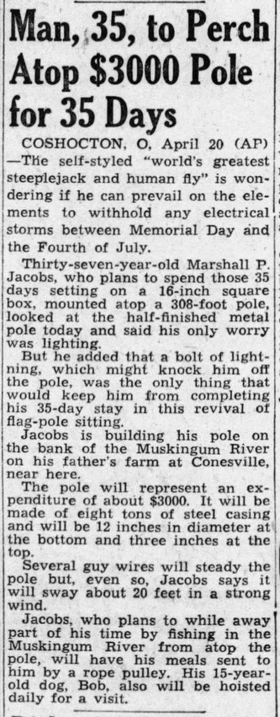 Ghastly News for Tuesday 4/21/2026: “Man, 35, to Perch Atop $3000 Pole for 35 Days”
